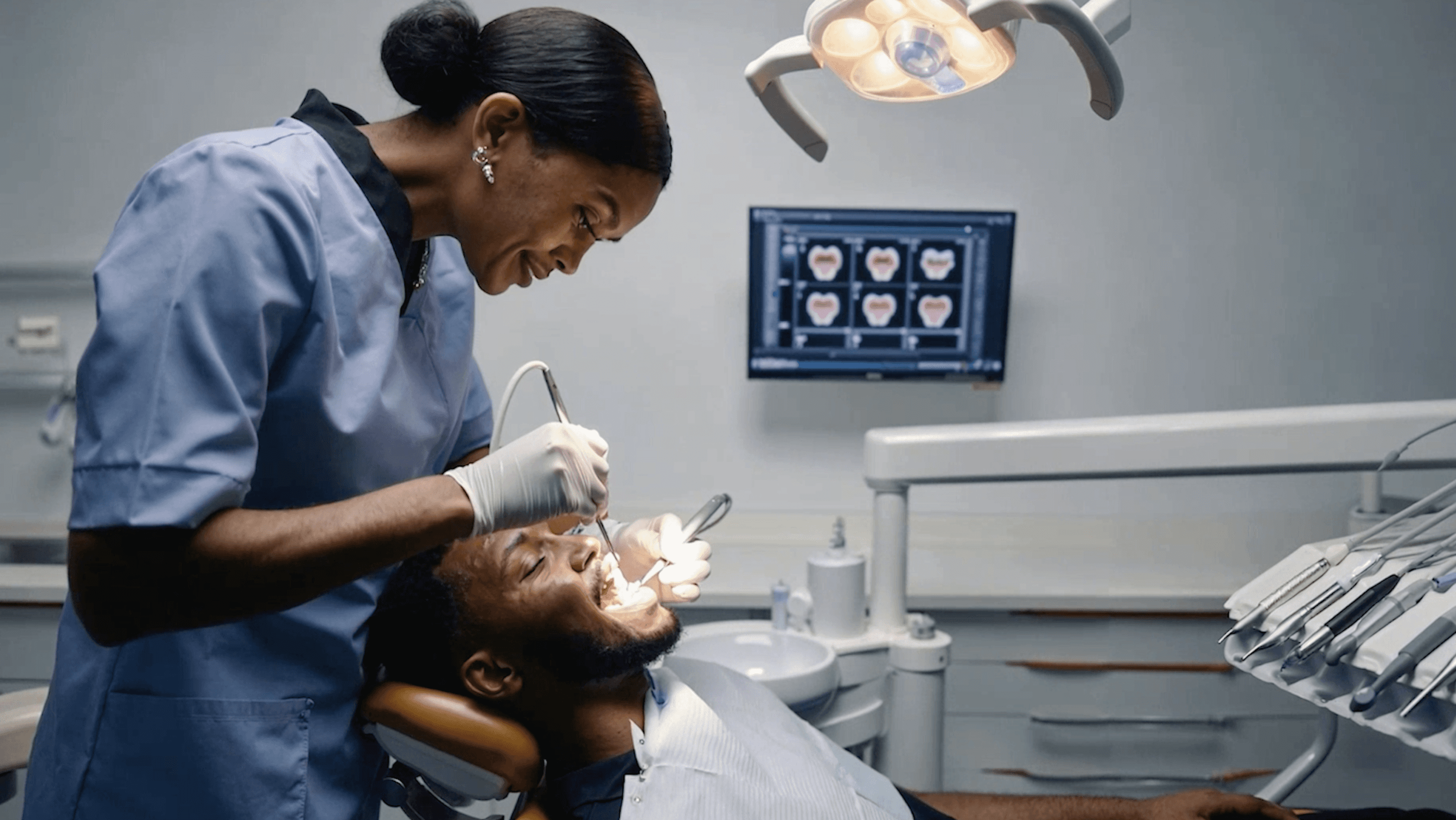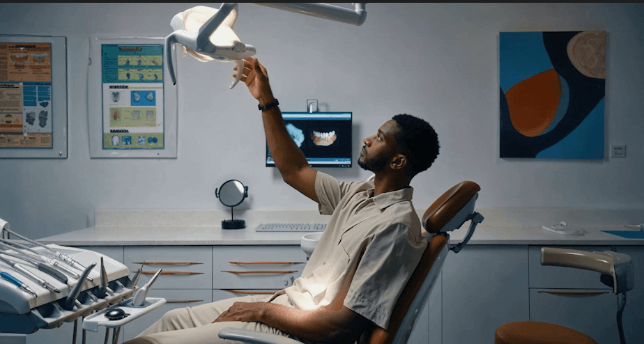 A dentist’s office without a dentist, where the patient attempts (and fails) to extract his own tooth.
